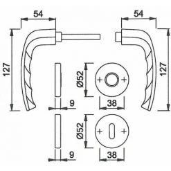 - Ensemble BDC (Bec de Cane) : un seul trou sur la plaque pour la béquille (la poignée)