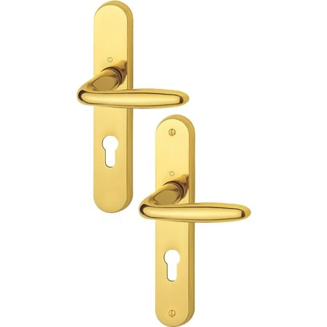 Détails : Garniture complète en laiton massif, ou aluminium anodisé ou époxy blanc, sur plaque pour porte intérieure d’épaisseur : 38 à 47 mm ( 40 mm en fonction condamnation)