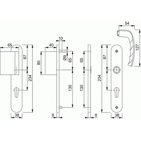 Ensembles portes palières sur plaquesEnsembles porte palière sur plaque en aluminium anodisé New York Entraxe de fixation : 195 mm.