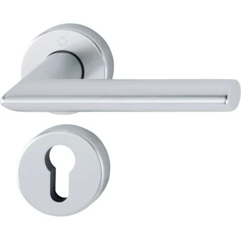 Produit NouveauEnsemble à haute résistance Stockholm <>Ensembles sur rosaces à haute résistance Stockholm <> Béquilledouble sur rosace à 52 mm à entraxe de fixation 38 mm.Assemblage hauterésistance: garniture monobloc, ressort de rappel, poignée à clipserSertos avec mécanisme de blocage à billes et b 10 Ans Garantie