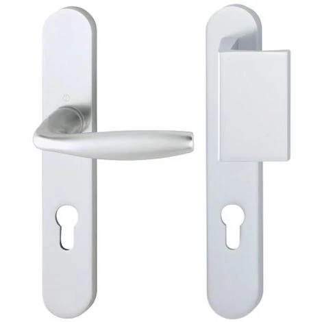 Ensembles portes palières sur plaquesEnsembles porte palière sur plaque en aluminium anodisé New York Entraxe de fixation : 195 mm.