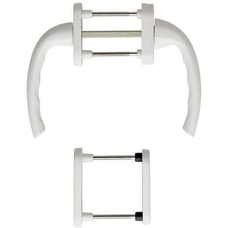 Béquille double alu, carré de 7 mm entraxe des trous 43 mm, Tokyo blanc 9016. Platine 66 x 28 mm solidaire de la béquille. Avec rosace clé I ovale, Avec rosace clé I ovale, Tokyo blanc 9016