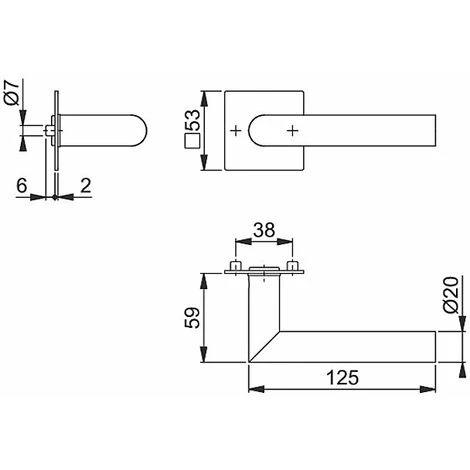 Béquille double Amsterdam inox mat pour porte épaisseur 35/45 mm, bec-de-cane, Bec-de-cane