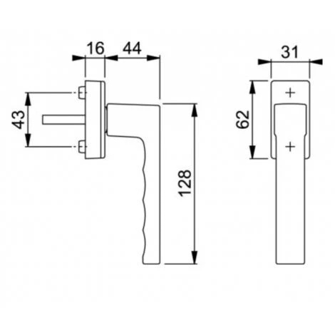 • Carré: carré plein HOPPE, longueur variable de 10 mm, ajustement variable grâce au ressort intégré dans le col de la béquille