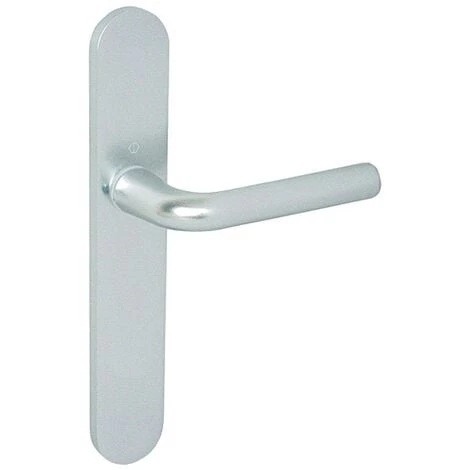 Ensemble Bonn, entraxe EA 70 mm, entraxe de fixation 195 mm. Plaque de 234 x 38 mm. Bec-de-cane, alu anodisé argent, Bec-de-cane