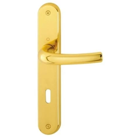 Ensembles laiton designEnsembles sur plaque 234 x 41 mm en laiton poli – TOKYO Plaques 234 x 41 mm -Entraxe : 70 mm carré de 7 mm.Pour portes d’épaisseur de 38 à 45 mm. Entraxe de fixation : 195 mm. Saillie de la béquille : 65 mm. Bouton fixe déporté rév 10 Ans Garantie