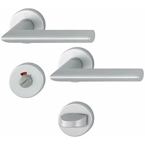 Ensemble sur rosace Stockholm alu anodisé argent F1, à condamnation avec voyant, revêtement antimicrobien, A condamnation avec voyant