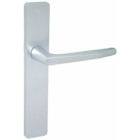 Ensemble Zürich, entraxe EA 70 mm, entraxe de fixation 195 mm. Fourni avec vis et tige carrée de 7 mm. Plaque de 218 x 39 mm, saillie 66 mm. Bec-de-cane, alu anodisé argent, Bec-de-cane