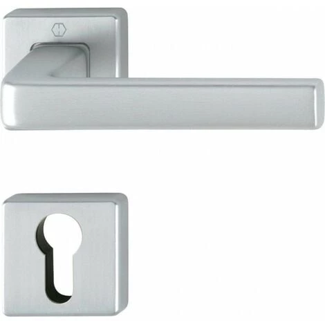 Garniture sur rosace, pour portes intérieures. Fixations invisibles. Dimensions des rosaces : diamêtre 44 mm, épaisseur 8 mm Entraxes de fixation : 36 mm Finition : aluminium aspect chromé clé en i