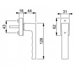 - Liaison : carré à montage rapide HOPPE avec carré plein HOPPE (poignées mâle/femelle)