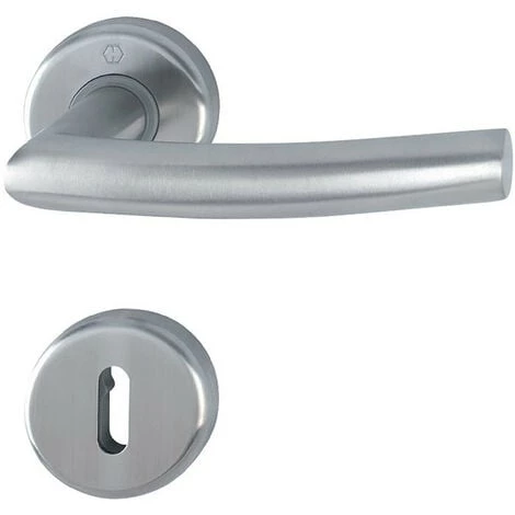 Garniture de rosettes à porte intérieure · Poignées de porte avec raccord de crayon profilé (8 mm carré) pour l’épaisseur de la porte 38-42 mm et ressort arrière · Rosettes avec des caiss de soutien vissées invisiblement · DIN gauche / droite Autres caractéristiques techniques : · Longueur de la pression : 136mm · Système de fixation : crayon de profil · Complément: D/D · Profondeur de la pression : 66mm · Distance de came : 38mm · Numéro de couleur : F69 · Norme : DIN 1906. Marque: HOPPE. Marque: HOPPE