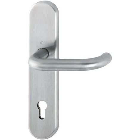 pour protection mixte · Poignée de porte en acier inoxydable à demi-garniture pour portes extérieures /appartement (intérieur) · Stockage: poignée de porte fixe/pivotante, roulement lisse sans entretien · Connexion : pour le crayon d’écarteur HOPPE (commande séparée) pour les portes forées unilatéralement · Sous-structure : Acier · Fixation : cachée, vis polyvalente · Caractéristiques : combinable avec des roseaux de protection HOPPE ronds ou carrés sur le côté extérieur de la porte · Trou PZ · DIN gauche / droite Autres caractéristiques techniques : · Supplément: D/- · Profondeur de la pression : 69mm · Direction de la frappe : DIN gauche / droite