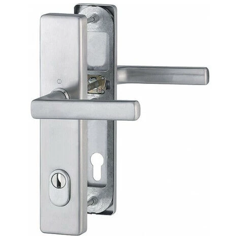 pour portes de clôture · testé selon DIN 18257 · Sous-structure en acier dans le panneau extérieur et intérieur · avec paquet de ressort de retour · avec bouton fixe · avec couvercle de cylindre en acier trempé pour sa longueur de cylindre 10-18 mm · avec raccord à crayon rapide · Vissage à haute fixation, de couverture Trou PZ · Acier inoxydable mat · DIN gauche / droite · Classe de résistance ES 1 Autres caractéristiques techniques : · Largeur : 54mm · Longueur : 250mm · Couverture : avec couverture de cylindre · Épaisseur de la plaque : 15 mm · Supplément : quadruple déposé · Numéro de couleur : F69. Forme carrée: 10 mm, Couverture cylindre: mit ZA, Marque: HOPPE. Forme carrée: 10 mm, Couverture cylindre: mit ZA, Marque: HOPPE