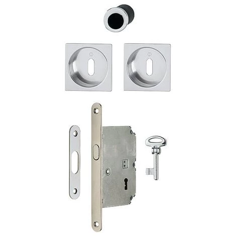 SET 3 pour porte coulissante aluminium 8MM / Clé L rabat table 53.5MM / avec gâche / Épaisseur porte 35-52MM / cuvette carrée.